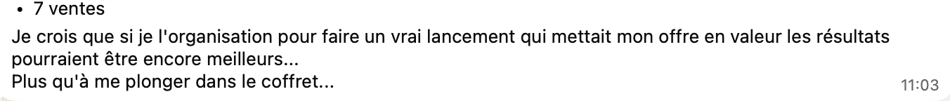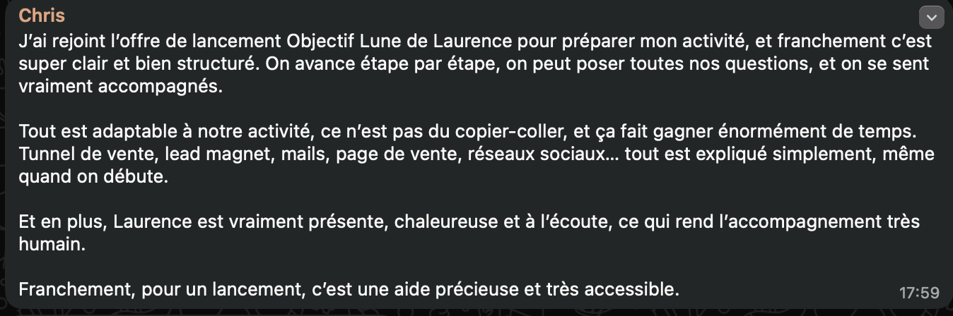 Si tu as un lancement prévu dans les 6 mois à venir, tu peux le préparer en toute sérénité et tu bénéficies de l'aide dont tu as besoin dans le groupe WhatsApp.