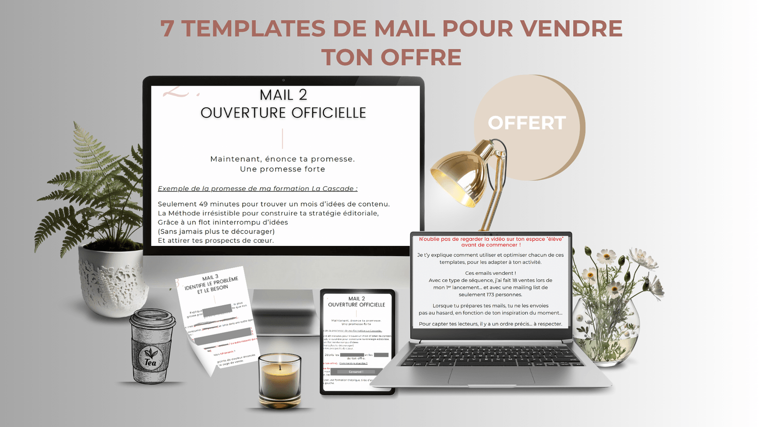 ✨ Une séquence de 7 mails à copier-coller et à remplir avec ta personnalité et les infos de ton offre